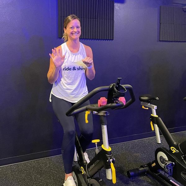 “Back in May, my longtime friend and former teammate, Janelle, told me I should check out Ride and Shine. I was really looking for something new as running just wasn’t doing it for me anymore. I remember in my 3rd class, the lights were off and Jill said, ‘Whatever you are going through right now, you will get through it!’ The tears just started running down my face. In the past couple years, it was something I had to tell myself a lot: you will get through this. It was in that moment that I was hooked on Ride and Shine! When I clip in, usually before my brain has time to figure out what is going on at 5:45 am, I get about 50 minutes to focus on me with the help of all the other riders and the instructors who have been incredibly supportive. I always seem to hear something like, “yes you can,” “you can do hard things,” or other forms of encouragement that we ALL need reminders of! I show up and do the work because I know what it does for me physically, mentally and emotionally. I am so grateful for Ride and Shine! I look forward to adding my name to the 100 and 200 ride wall some day!”